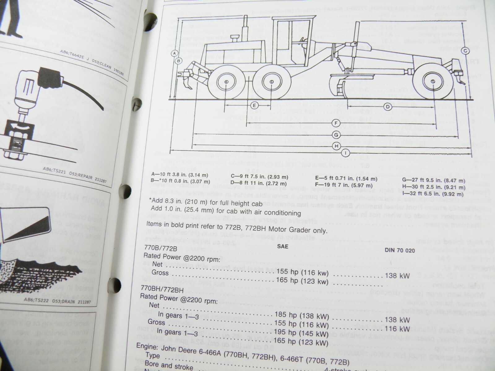 Parts Manual 770b 770bh 772b 772bh Motor Graders - Fits: 670B Grader | 672B Grader | 770B Grader | 770BH Grader | 772B Grader | 772BH Grader Jensales is proud to bring you the Service Manual for your John Deere 770BH Grader. This Service Manual (a.k.a. Shop, Repair, Overhaul, Technical Manual), is what your. You searched John Deere tractor manuals for "770B 770BH 772B 772BH Motor Graders": Manual Price; 770B, 770BH and 772B, 772BH Motor Graders Operators Manual, 238 pages: $67.00 $56.95 (SAVE 15%)! 770B Dsl Motor Grader Operation & Test Service Manual, 602 pages: $427.00 $362.95 (SAVE 15%)! 770B Dsl Motor Grader Chassis Only Service Manual, 770 pages. Buy Now John Deere 770B 770BH 772B 772BH MOTOR GRADERS Parts Manual Parts Catalogue Pdf Download Is the same manual used by technicians at the dealerships to find the parts.JOHN DEERE 770B 770BH 772B 772BH Motor Graders Owner Operator Manual OMT149118 - $84.99. Preowned John Deere 770B 770BH 772B 772BH Motor Graders Owner Operator Manual OMT149118. Cover has wear. All pages are intact. 192871811154. Our 770B / 770BH / 772B / 772BH John Deere workshop manuals contain in-depth maintenance, service and repair information. Get your eManual now!. Get the best deal for Heavy Equipment Manuals & Books for John Deere Motor Grader from the largest online selection at eBay.com. Browse our daily deals for even more savings! Free shipping on many items! John Deere 770B 770BH 772B 772BH Motor Graders Operator Manual OMT123950. C.