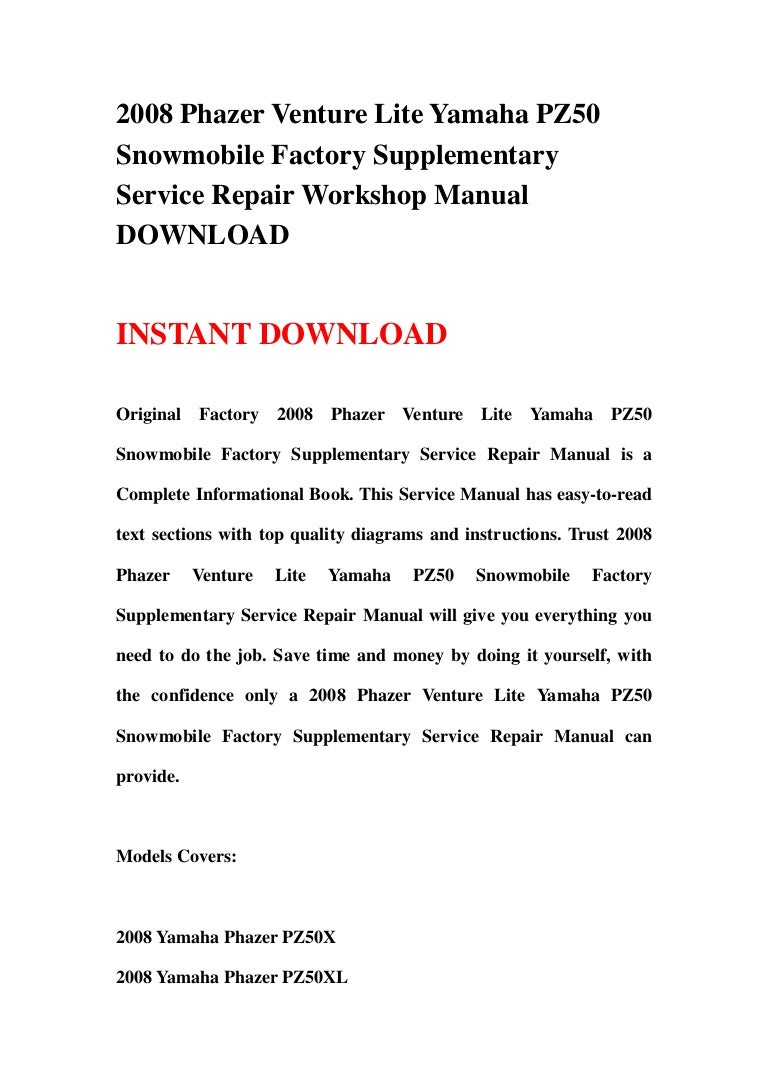 2008 phazer venture lite yamaha pz50 snowmobile factory supplementary…