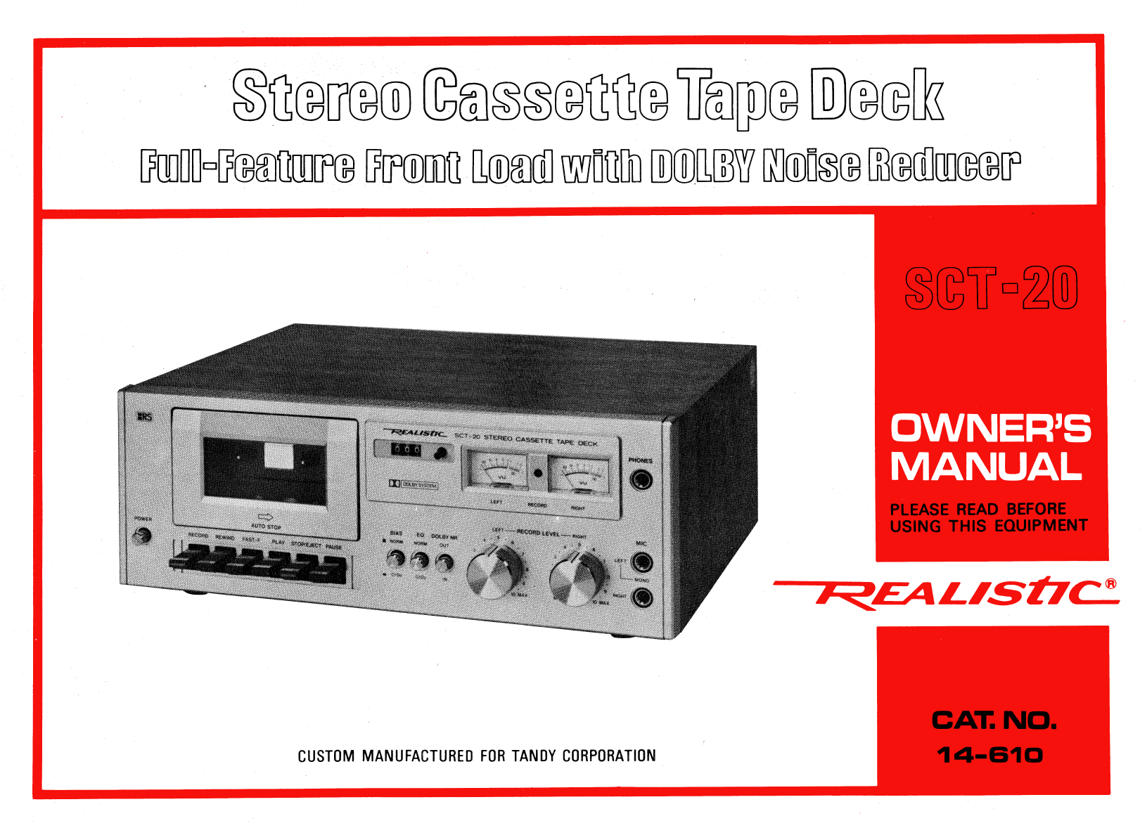Manual for Realistic SCT-20 Stereo Cassette Deck (14-610) | manualzz.com