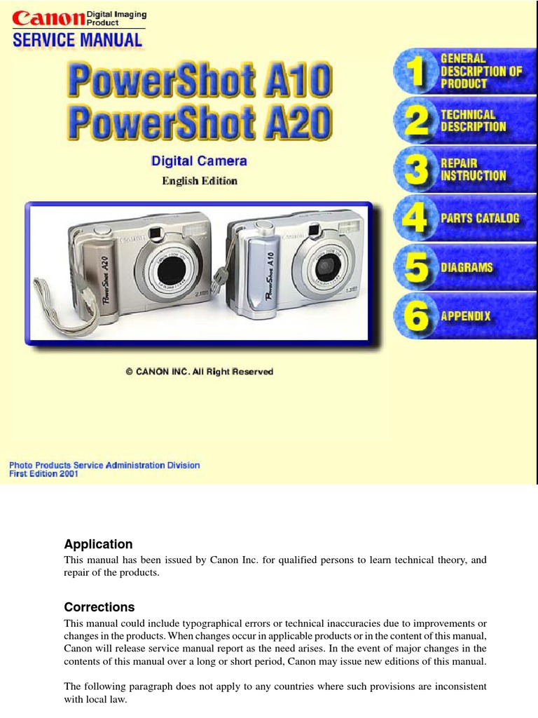 Service Manual PowerShot A10 A20 | Exposure (Photography) | Zoom Lens