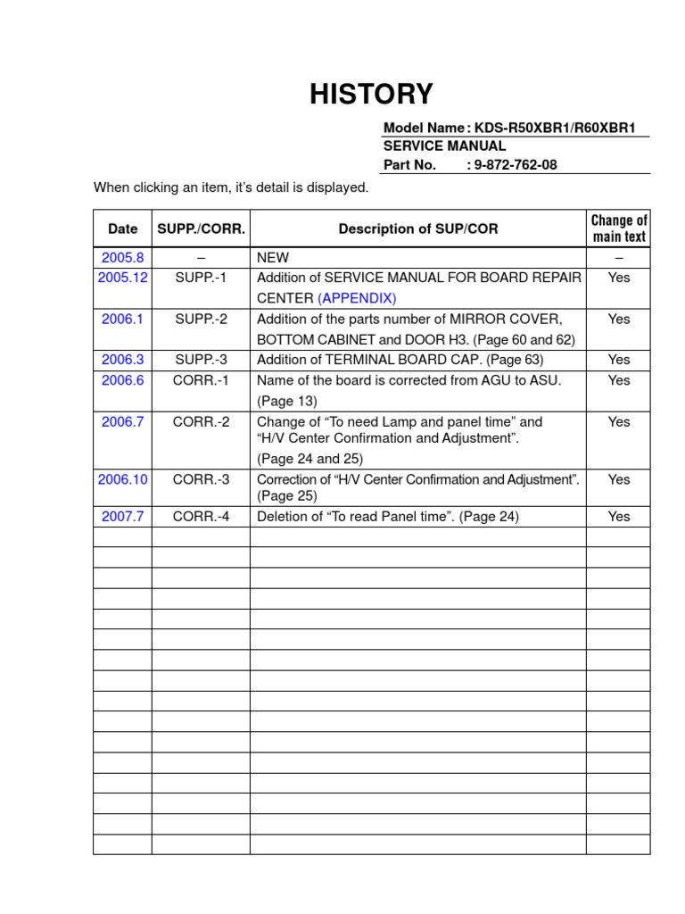 KDSR60XBR1 Service Manual | Incandescent Light Bulb | Television