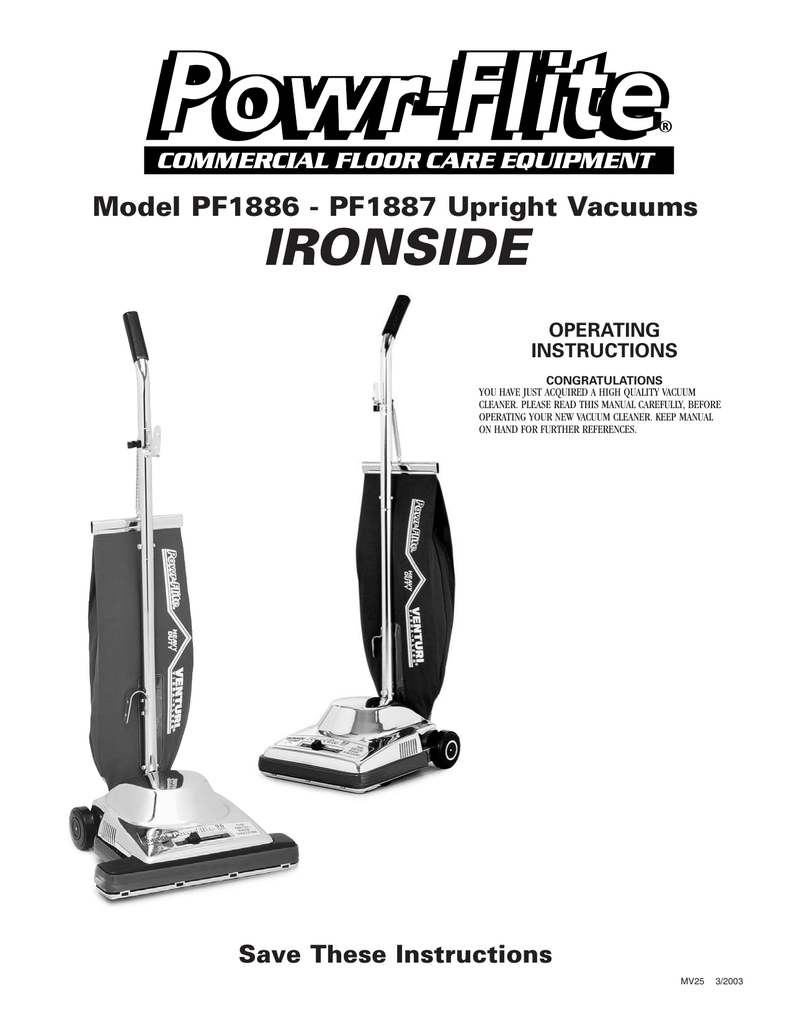 IRONSIDE Model PF1886 - PF1887 Upright Vacuums OPERATING ...