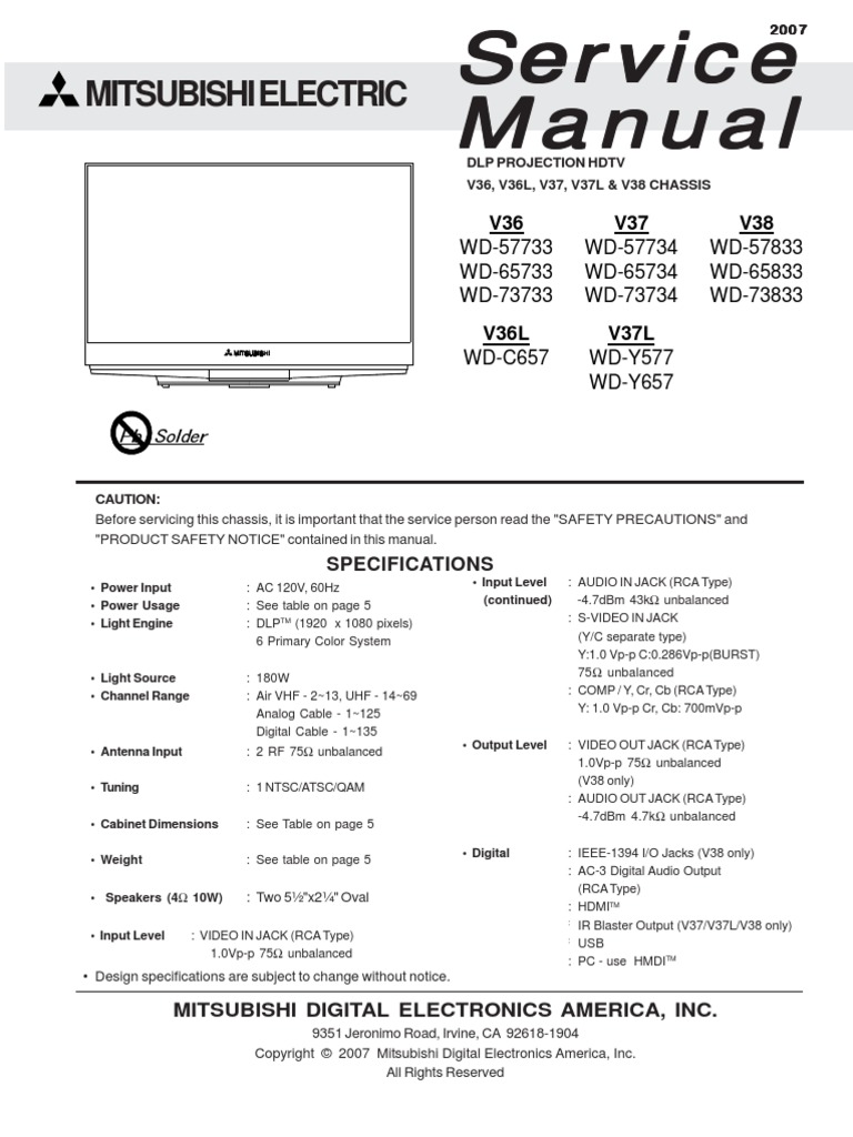 V36 V37 V38 Service Manual | Hdmi | Electronics