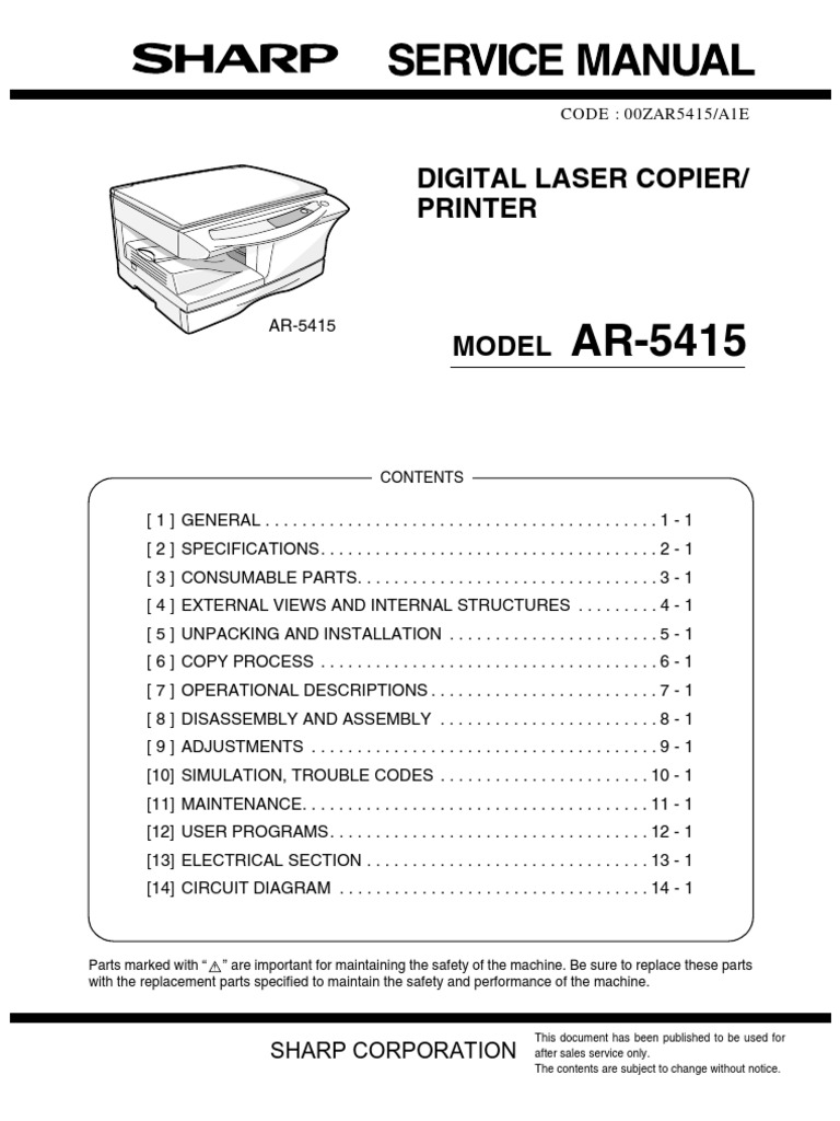 Sharp AR-5415 Service Manual | Image Scanner | Printer (Computing)