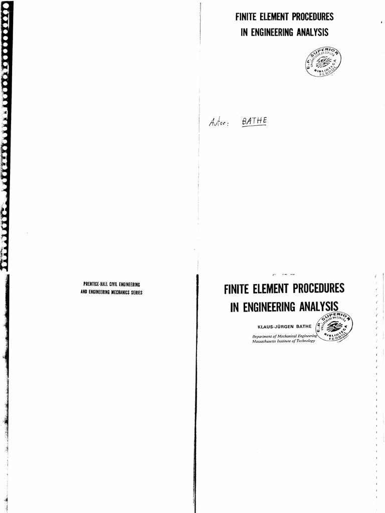 This book focuses on finite element procedures that are very useful and are widely employed. Formulations for the linear and nonlinear analyses of solids and structures, fluids, and multiphysics problems are presented, appropriate finite elements are discussed, and solution techniques for the governing finite element equations are given.. [4] and The Mathematical Theory of Finite Element Methods [2]. The first work provides an extensive coverage of Finite Elements from a theoretical standpoint (including non-conforming Galerkin, Petrov-Galerkin, Discontinuous Galerkin) by expliciting the theoretical foundations and abstract framework in. Tags : Book Finite Elements Procedures in Engineering analysis Pdf download M.E. CIVIL CONSTRUCTION STRUCTURAL ENGINEERING. Book Finite Elements Procedures in Engineering analysis by K.J.Bathe Pdf download Author K.J.Bathe written the book namely Finite Elements Procedures in Engineering analysis Author K.J.Bathe M.E. CIVIL CONSTRUCTION.