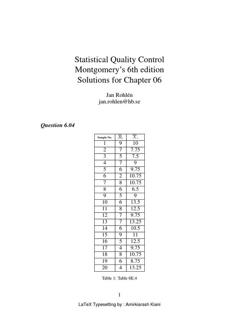 Solutions manual for Introduction to statistical quality control, second edition, Douglas C. Montgomery Quality Improvement, 9/E Dale H. Besterfield, Statistical Process Control, Quality Improvement, and.