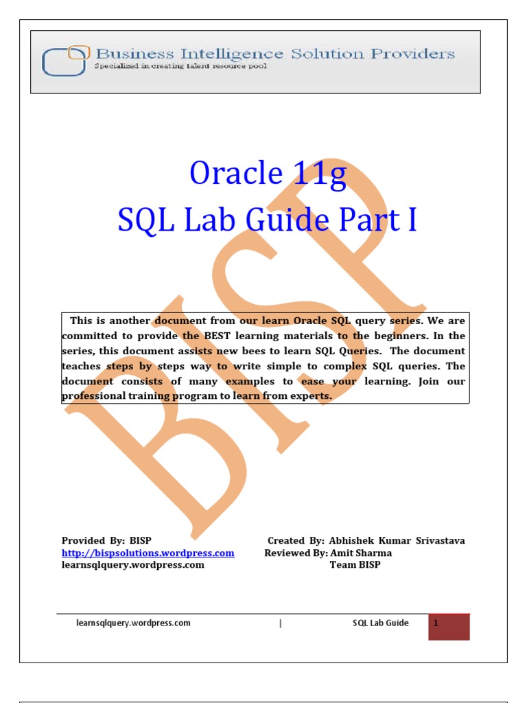 Oracle11g SQL Lab Guide | Sql | Table (Database)