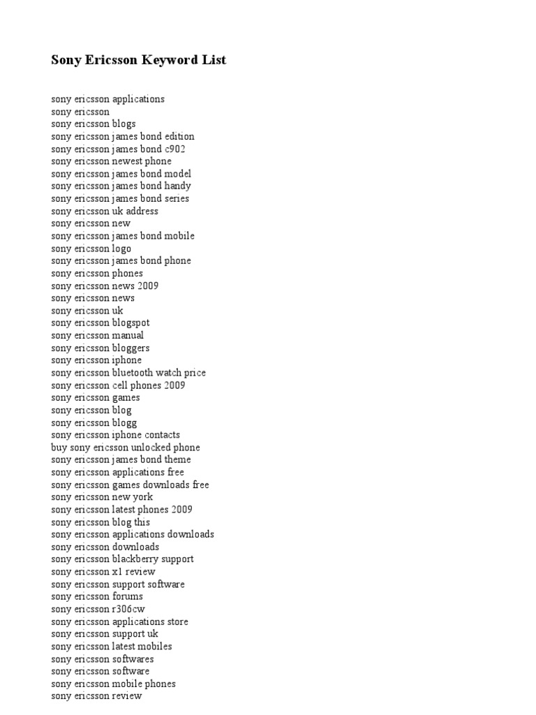 Sony Ericsson Keyword List | I Phone | Telephony Equipment