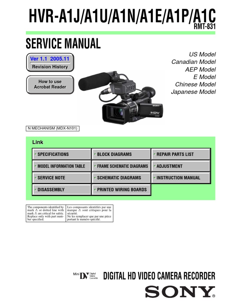 Sony Hvr A1 Service Manuals Repair Guide - View and Download Sony HVR-MRC1 service manual online. MEMORY RECORDING UNIT. HVR-MRC1 Camera Accessories pdf manual download.. View and Download Sony HVR-DR60 service manual online. HVR-DR60 DVR pdf manual download.. Welcome to getMANUAL.com on-line store! We sell electronic versions of service and user manuals, part lists, schematic diagrams for home and professional audio-visual equipment, PCs.Learn about the latest consumer electronics Sony has to offer, discover features of our products and find the ones which would suit your needs.. Online shop. We offer a simple user friendly web interface whereby customers may browse and find product information, place orders and choose economical delivery options that best suit your needs.. l y b e r t y . c o m : now serving over 10,000 files (> 2,200 active html pages) adb creative suite 3 compare lyberty . splash page version: 2007-06-28 (June 28) 選ぶべき道は自由か死だ。.