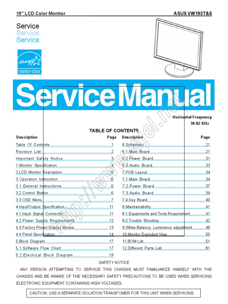 Asus Monitor Vw193t & Vw193s (Service Manual)