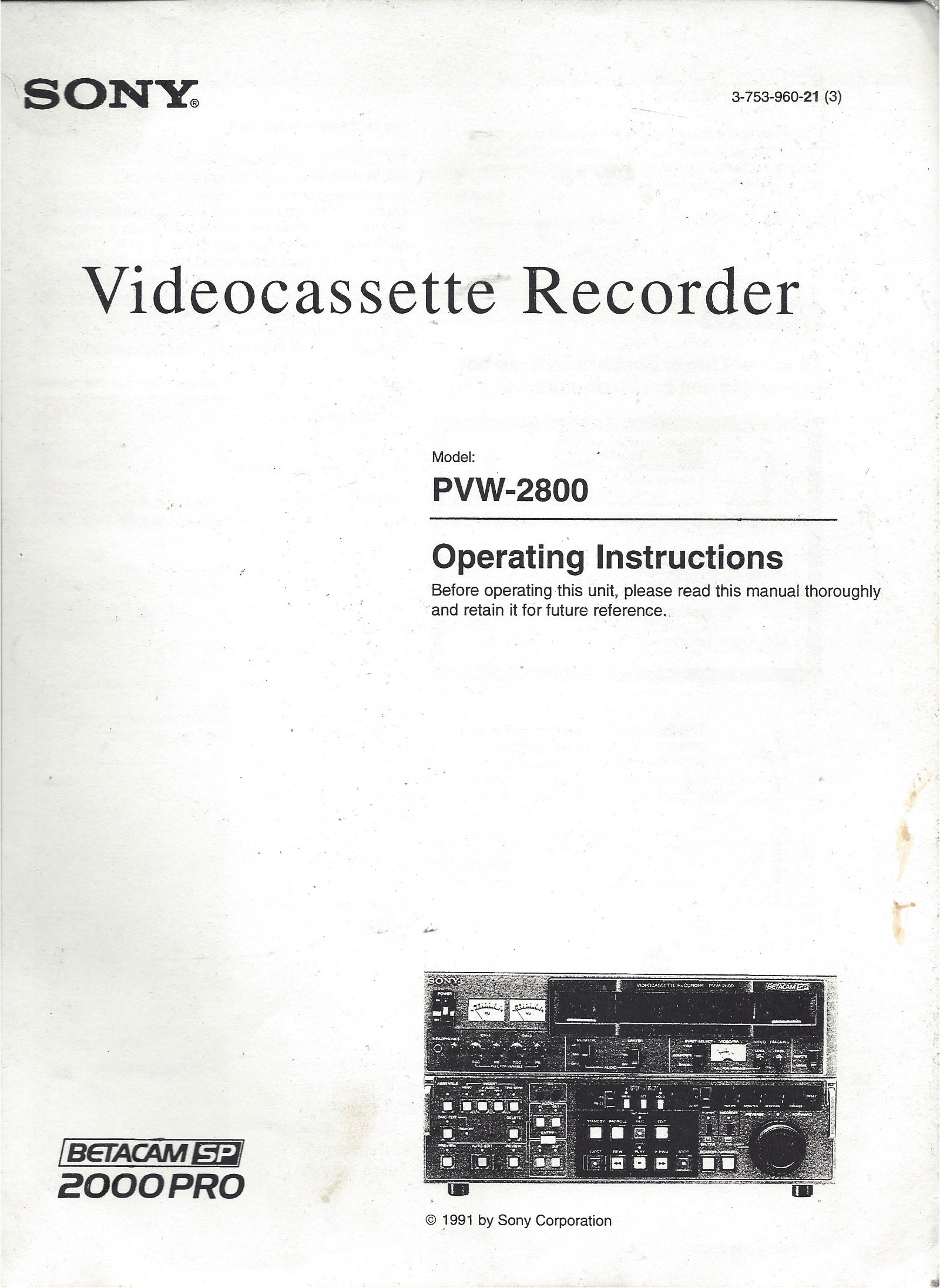 Manuals and free instruction guides. Find the user manual.. Sony BVV 5 Betacam SP Beta Video Tape Player Recorder, Sony PVW 2800 SONY UVW 1800 BETACAM SP VIDEO RECORDER DRUM: 00204 UVW, Sony. of Enter your ZIP code. Go. Please enter a Sony Betacam SP PVW-2800 Editing Player Beta Video Cassette Recorder. $99.00 Lot of 9 Used Video Cassette Recorders Sony BetacamSP UVW-1800, PVW-2800,.