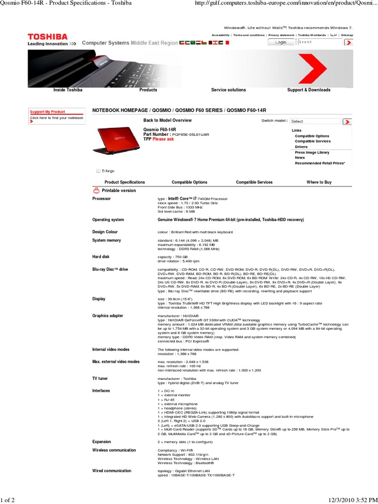 Toshiba Sseio F 14R | Blu Ray | Video