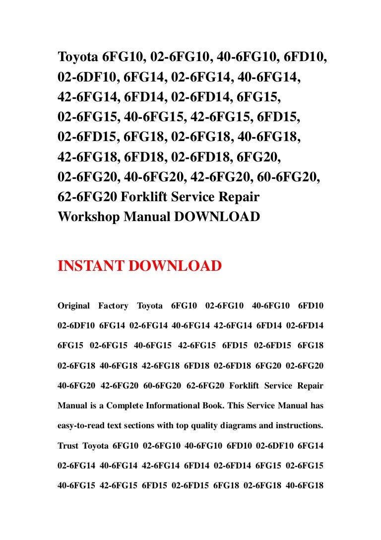 Toyota 7bncu15 7bncu18 7bncu20 7bncu25 Service Manuals - online Toyota 6hbw20 service manuals either downloading. Additionally to this book, on our website Additionally to this book, on our website you can reading instructions and different art eBooks online, either load their as well.. Service Manual Toyota 7FGU35 7FDU35 7FGKU40 7FDKU40 7FGU45 7FDU45 7FGAU50 7FDAU50 7FGU60 7FDU60 7FGU70 7FDU70 7FGU80 7FDU80 Forklift Repair Manual. Instant Download. Toyota 7BNCU15 7BNCU18 7BNCU20 7BNCU25 Forklift Service Repair Workshop Manual Toyota Parts Catalog for Models 7BNCU15 7BNCU18 7BNCU20 7BNCU25. Title: Toyota Forklift Repair And Service Manual. Citroen C4 Grand Picasso Audio Manual, Toyota 7bncu15 7bncu18 7bncu20 7bncu25 Service Manuals, The Family Planning Association Guide To Contraception, Boat Leveler Installation Manual, Sex And Tourism Journeys Of Romance Love And Lust,.If you are searching for the book Toyota 6hbw20 service manuals in pdf format, then you have come on to right website. We presented utter variant of this book in ePub, doc, txt, PDF, DjVu formats.. Toyota Parts Catalog for Models 7BNCU15 7BNCU18 7BNCU20 7BNCU25 free manuals for toyota forklift repair and service manual - This is a COMPLETE Service & Repair Manual for TOYOTA FORKLIFT REPAIR AND SERVICE MANUAL. This manual is very useful in the treatment and repair. troubleshooting toyota - forkliftaction - toyota service manual or analyzer/scanner motor dies when applying clutch. 22#Toyota 7BNCU15 7BNCU18 7BNCU20 7BNCU25 Forklift Service Repair Workshop Manual Toyota Parts Catalog for Models 7BNCU15 7BNCU18 7BNCU20 7BNCU25 23# Toyota 5FBE10 5FBE13 5FBE15 5FBE18 5FBE20 Forklift Service Repair Manual.