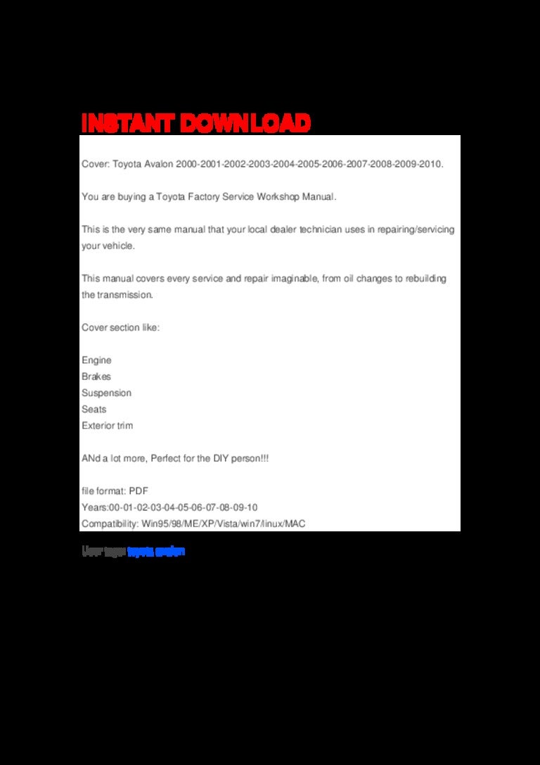 Toyota avalon 2000 2010 factory service repair manual by htrh - issuu