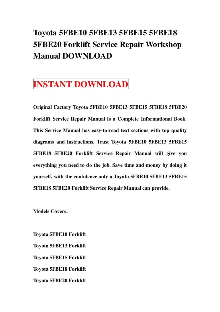 Toyota 5FBE10 5FBE13 5FBE15 5FBE18 5FBE20 Forklift Service Repair Wor… Toyota 5FBE10 5FBE13 5FBE15 5FBE18 5FBE20 Forklift Service Repair Workshop Manual