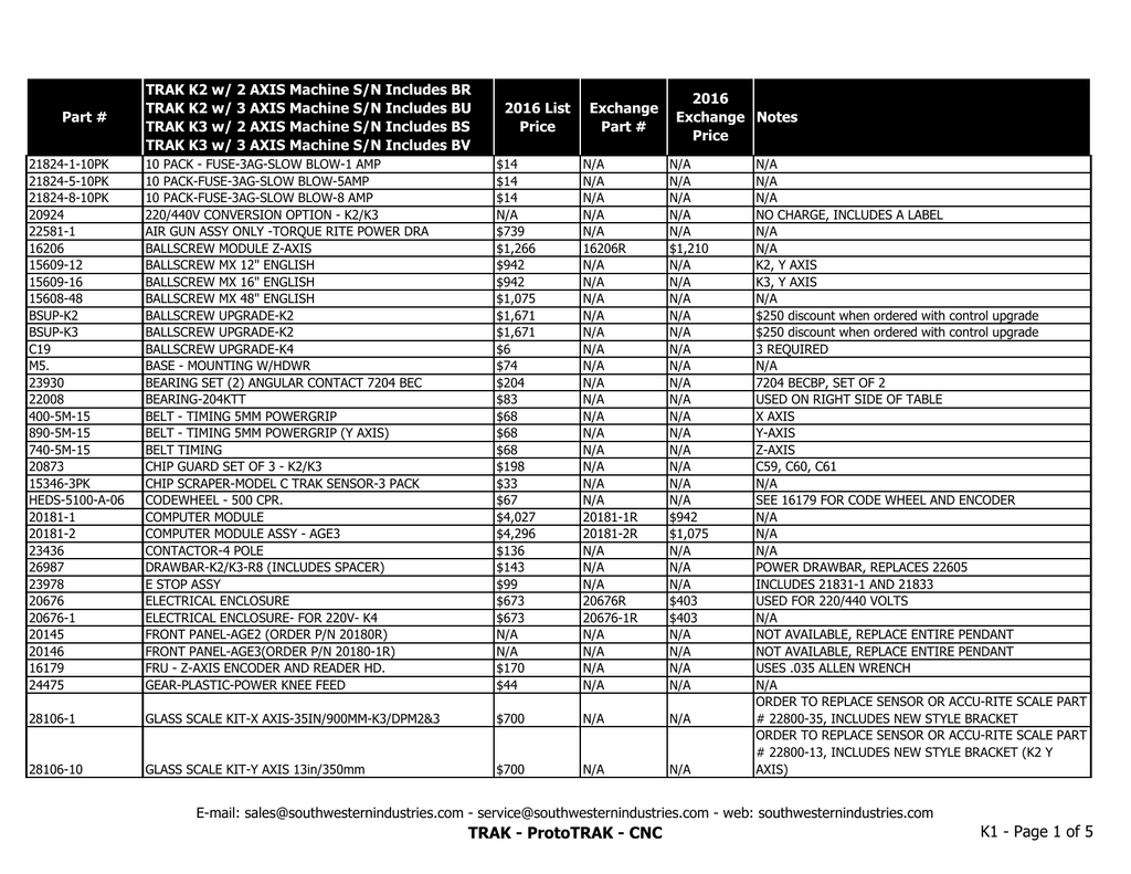 TRAK K2 & K3/TRAK AGE3 & AGE2 - Service Parts Price List | manualzz.com