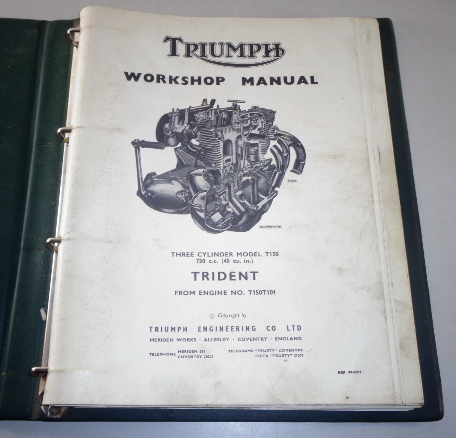 Triumph Trident T150 1971 Repair Service Manuals - When in fact, review TRIUMPH TRIDENT T150 1971 REPAIR SERVICE MANUAL certainly provide much more likely to be effective through with hard work. For everyone, whether you are going to start to join with others to consult a book, this TRIUMPH TRIDENT T150 1971 REPAIR SERVICE MANUAL is very advisable. And you should get the TRIUMPH TRIDENT T150. Triumph T150v Trident 1971 1974 Repair Service Manual Ebook Pdf Triumph T150v Trident 1971 1974 Repair Service Manual contains important information and a detailed explanation about Ebook Pdf Triumph T150v Trident 1971 1974 Repair Service Manual, its contents of the package, names of things and what they do, setup, and operation.. Up to 35% Off Triumph Motorcycle Repair & Service Manuals. www.AutoRepairManuals.biz BEST BRANDS REPAIR MANUALS Auto, Marine, Motorcycle & ATV Manuals Chilton, Haynes, ATSG, Factory and More. 1969 - 1975 Triumph Trident T150, T150V, BSA Rocket III Haynes Repair Manual (SKU: 0856961361) Retail Price $ 37. 95:.HomePage Motorcycle Repair & Service Manuals BSA Motorcycle Repair & Service Manuals. Sort By: 1969 - 1975 Triumph Trident T150, T150V, BSA Rocket III Haynes Repair Manual (SKU: 0856961361) Retail Price $ 37. 95: ON SALE $ 16. 95: Qty: Add to Cart. More info 1947 - 1974 Chilton's Motorcycle Repair Manual (SKU: 0801958768) 1971 BSA Bantam. Oct 19, 2018 · click here to learn more Softcover – 132 pages – Triumph Trident BSA Rocket 3 1969 – 1975 Haynes Owners Service Repair Manual Covers the following Models: T150 Trident 741cc 1969 – 1972 T150V Trident 741cc 1972 – 1975 TRX75 Hurricane 741cc 1973 A75 Rocket (BSA) 741cc 1969 – 1972 A75R Rocket 3 (BSA) 741cc 1971 – 1972Contents: Maintenance Engine. Workshop Manual Genuine New Old Stock, 4 Ring Binder Type. Triumph Part Number 99-0963, incorporating 99-0887 & Supplement 00-4223) Suitable for Triumph T150/T150V Trident 1969-75 (including disc brake models).